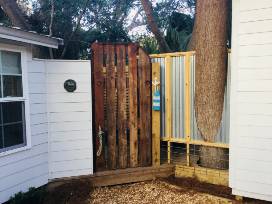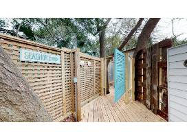 Conched Out Cottage is just steps to one of the best beaches on Saint Simons Island. The cottage has two bedrooms and two full baths. Master bedroom and bath located on first floor. While the guest bedroom and guest bathroom are located on the second floor. Totally renovated kitchen with all stainless appliances and fully equipped with everything that you will need for your stay. There are two sunroom sitting areas located on the first floor. Along with a screened in porch on the rear and an open porch off of the guest bedroom complete with a twin size bed swing. The front gate leads to the outside shower for those coming in from a long day at the beach. There is an outside bar with swings for seats. And a fire pit with four seats for those cooler nights.