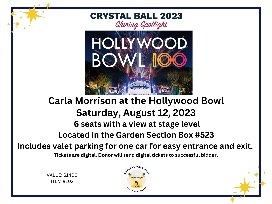 Experience the magic of Carla Morrison at the Hollywood Bowl on Saturday, August 12, 2023. Enjoy 6 seats with a view at stage level, located in the Garden Section Box #523, for an unforgettable evening under the stars. Includes valet parking (1 car) for easy entrance and exit. Wine and dine in style with a bottle of 2020 J. Lohr Paso Robles Cabernet Sauvignon (1.5 L) & Rachel Zoe outdoor wine glasses and cocktail napkins. Hearth & Home multi-use storage basket is packed with two wooden appetizer platters, six wood mandala wine coasters and a travel wine opener & stopper set. Enjoy your wine with Leslie Stow Raincoast crisps, Trader Joe's Manzanilla Olives, balsamic vinaigrette and marinated artichokes. Bid on this amazing auction basket to enjoy a night of music, wine, and food with loved ones.