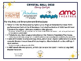 Table for 6 to the Pasadena Symphony and Pops at Selected Summer 2023 performances held at the Arboretum. Includes a bottle of 2019 San Simeon Cabernet Sauvignon with two stemless wine glasses.
