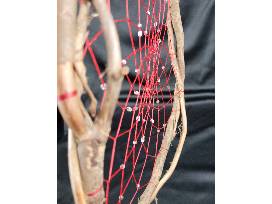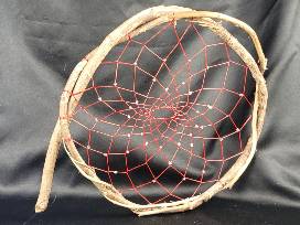 Medium: CEDAR, SINEW, CRYSTALS, AND ASSORTED BEADS, NATURALLY HAND TWISTING AND WEBBED