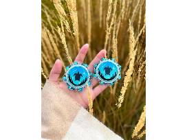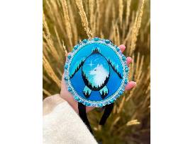 Medium: Hand painting, acrylic paint, faux leather, resin, various types of beads (crackle quartz,