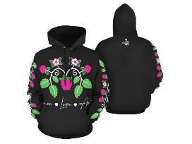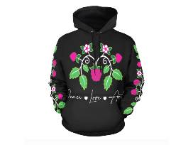 This Woodland Berry exclusive design represents our connection to Mother Earth and the power of healing. The Anishinaabe Ode'imin (heart berry) is a sacred medicine that carries many teachings and is often shared with others in feasts and ceremonies reminding us to always look in our hearts to find peace and love. This hoodie is made with polyester material.