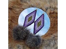 Medium: #11/0 & #10/0 seed beads, hand sewn non-detatchable rabbit fur pompoms, gold