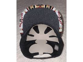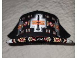 The brand for this hat is Nu Trendz and the design inspiration was drawn from the hat itself. This was made with size 11 Japanese seed beads and size 13 permanent gold seed beads. The intricate designs and addition of the gold beads make this hat stylish and "extra". This made me think of the catchy song "Boujee Natives" by the Snotty Nose Rez Kids. This is a one size 100% cotton hat with adjustable snaps in the back.