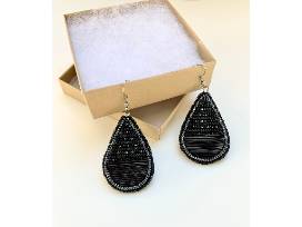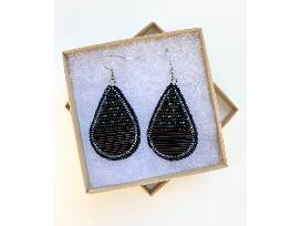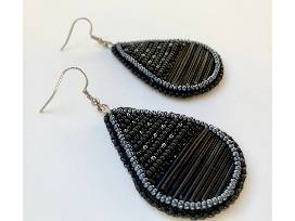 Title: Black beaded Porcupine Quill Teardrop earrings
