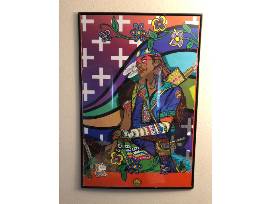 Freddy Throne is a member of the Spokane tribe from Spokane, Washington. From digital design, Murals and art installation Freddy has been breaking out in the art scene of the Pacific Northwest. An Airforce veteran, this artist submerges himself in colors of Florescent and bright hues of acrylic, spray paint and print. Works of art is inspired of graffiti, pop art, abstract and Saturday morning cartoons.