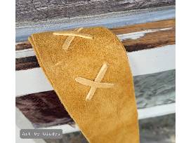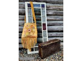 Medium: Smoked traditional tan hide that is sourced from our local communities, Various beadwork and embroidery floss stitch designs/patterns.