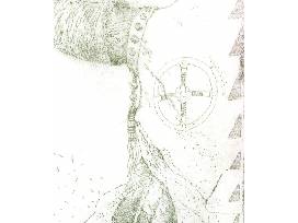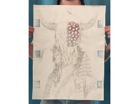 I am Jimmy Dean Horn jr, a Chickasaw artist. I draw, paint, print and create in just about anyway I can. My recent series "The One That Sits Above" explores what it means to be a white passing Native American in a society built on entitlement, bent on destroying itself and everything with it. I grew up in a military family detached from the culture, the past decade I have been learning and unlearning as I explore a culture I was denied. Each of the pieces within this series (20 in total, 10 fullsize 27x50", 10 portrait 18x24") touches on a different part of that narrative.