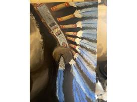 Showing that young women can be warriors and posses power that runs through their veins. Most Native American cultures have war bonnets that show they are strong smart and and willing to fight. In the painting I show a young woman willing and experienced to fight the growing MMIW problem. She adorns a war bonnet to show she has fought before and the faded red hands are battles she over come and looks ahead to the next. To fight not just for herself but others and show the ways to overcome anything. To face a challenge head on is a power that everyone has inside them and sometimes it just takes some one to show you the way. Beauty isn't a sign of weakness and there's no such thing as a weaker sex Women are strong Warriors and they possess power way beyond and society needs to see that.
