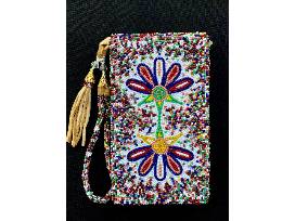 Beadsoup means different things to different tribes throughout Indian Country. To me it is a reflection of the resourcefulness that beadworkers exhibited within their craftsmanship. This case is a reflection of the past belief to utilize all of the beads and value them because one does not know when they will be able to afford or obtain beads. Floral work is incorporated into this concept to reflect the dominance of floral patterns within Salish and Crow tribal designs. It has a contemporary twist by emanating a functional phone case.