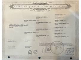 Mecom Ranch Blue is 2021 bay roan stallion. At time of registration this colt was bay roan and now he is blue roan. He has so much expression when he moves and he doesn't miss anything. His sire was not shown due to an injury and his dam is a beautiful blue roan mare. His granddam "The Color Blue" is the first "Mecom Blue" foal.