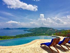 Up to 10 guests enjoy 8 days and 7-nights in a private, 4/5 bedroom with 4/5 bath luxury villa nestled in the mountainside in Playa Hermosa, Guanacaste Costa Rica, conveniently located 30 minutes from the airport and 4 minutes from the Pacific. Villas come complete with a private chef, onsite concierge, infinity pool, and each bedroom has breathtaking panoramic views of the ocean and volcanoes. Many of these villas were featured on HGTV House Hunters International. Private chef available for 6 days with 2 meals per day, grocery cost not included. Blackout Dates: Weeks prior and following Christmas,New Years & Easter. Holiday weekends have limited availability. You will receive an email from [email protected] within the next 10 business days on trip redemption instructions and booking details.