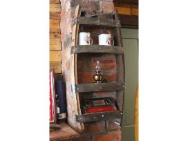 This one of a kind shelf is hand-made from sanded and oiled, oak whiskey barrel staves and is accented with the barrel's metal banding. It is perfect for diplaying your favorite short bottled bourbons and is sure to be a conservation peice at your next get together.
