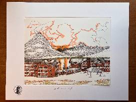 -Montana Ink Illustration original- "Sunset at the Lodge" by Hallee Frandsen of Glacier Made Ink Illustrations