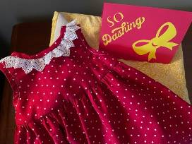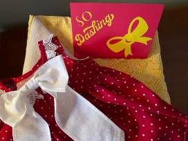 A future "dashing DASHER" will be ready to roll with this handmade dress, trimmed in lace and bow. Comes with a warm tufted quilt in her favorite colors! She'll always be identified as a little supporter!