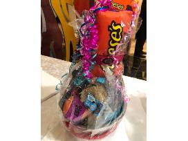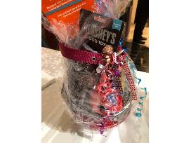 For your furry friend treats, a ball, lady bug, dog softy toys plus, for your dog's "sweet tooth" non-fatting Hershey and Reese's toys! Last, but not least a dog collar, metal dish and a frisbee! Bow Wow, what a package!!
