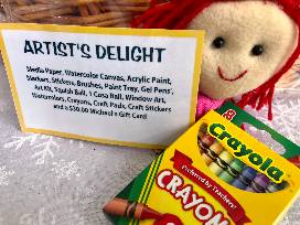 Wow! An artist dream come true! From watercolor canvas to media paper, an array of drawing and designing instruments. Plus, window art and so much more! Last, but not least if we missed anything a $30 gift card for Michaels! Have creative fun!