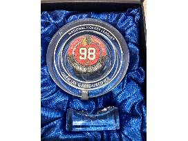 Own a piece of hockey history this crystal puck contains game used ice from Connor Bedard's NHL debut! How cool is that?? No pun intended. A real treasure! (Authenticated)