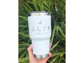 "The Alys" shawl/sarong and mini ribbon scarf which come from a collaboration between CB Grey and Alys Beach. A story of the life and soul of our town, capturing moments of thoughtful artistry and architecture told in luxurious silk. Also includes a signature 30 oz yeti tumbler.