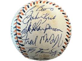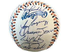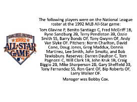 Autographed baseball from the 1992 MLB All-Star game National League team. The game was held on July 14, 1992, at Jack Murphy Stadium in San Diego, the home of the San Diego Padres of the National League. The game resulted in the American League defeating the National League 13-6.