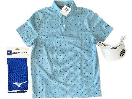 From the PGA Tour G1 Series a 7-pc set of junior golf clybs, Peter Millar outfit (size large) including shorts, pullover and Puma polo, mizuno visor and towel.