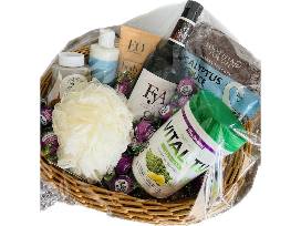 Enjoy this amazing spa basket including a one-hour massage, blue bonnet collagen powder, essential oils body lotion, eucalyptus spruce bath salts, Honest bubble bath, Sine on Lime Coconut, FYA Tempranillo red wine, and other healthy goodies.