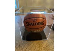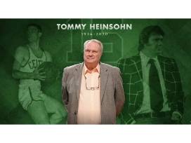 An autographed basketball by Tommy Heinsohn. For six decades Heinsohn played, coached and served as a broadcaster for the NBA. He played for the Celtics from 1956 to 1965, and also coached the team from 1969 to 1978. He spent over 30 years as the color commentator for the Celtics' local broadcasts.