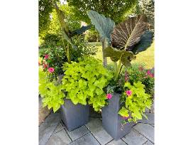 Enjoy the beauty of two custom-designed and professionally installed container plantings for the next three seasons! Each arrangement includes 12 inches of fresh organic potting soil.