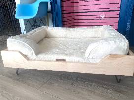 Made from maple wood and featuring sleek hairpin legs, this bed combines timeless design with comfort. The bed frame measures 38 inches wide, 29 inches deep, and 9.5 inches tall, and comes complete with a cozy, cushioned dog bed.