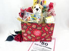 Explore Long Grove with this exciting package! Enjoy: - $25 to the Irish Boutique - $100 for dinner at Enzo & Lucia Ristorante - Candy & stuffed dog gift basket with $50 gift card for in-store candy classes at Ma & Pa's Candy - $50 for Village Tavern.