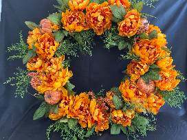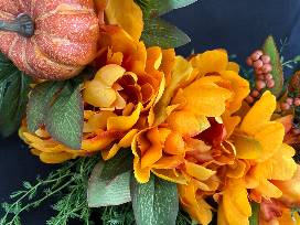This ? inch artificial wreath has been tastefully hand decorated for the fall season.