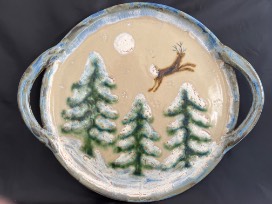 A beautiful, winter scene adorns this heavy-duty platter that can be used as both a holiday decoration and/or a perfect tray to serve holiday cookies!