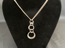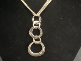Enjoy this silver, multistrand necklace with five alternating circles to dress even the most casual outfit!
