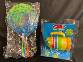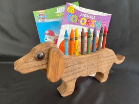 Any child would love this adorable dachshund crayon holder, butterfly/insect cage, Melissa & Doug flash light, set of butterfly/insect nets, and coloring books.