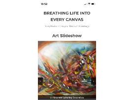 online music videos and heard some background music on painting tutorials. I watched and was so intrigued by the building of brush strokes to create a finished work, much like how I build songs with notes. Never did I think I would devour painting with such ferocity as I had with my guitar. The paintings seemed to fly out of me like my thoughts. A whirlwind of sounds seemed to drip from my fingers just like my hand that plucked strings. Painting became the visualization of my music. I began breathing life into canvas, and my paintings were breathing life back into me.