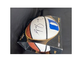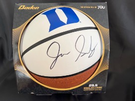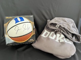 This package includes a Duke basketball autographed by head coach Jonathan Scheyer and a Duke hooded sweatshirt