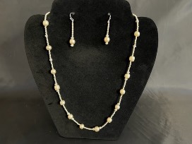 Beautiful matching silver & pearl necklace and earrings.