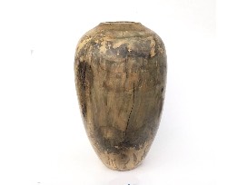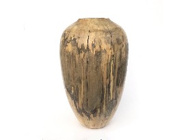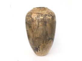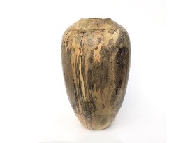 This vase has been handcrafted from a local Holly tree. It was harvested in the summer which gives it the light blue and gray streaks. Various cracks and bark inclusions have been left in this piece to enhance its rustic appearance. Most cracks have been filled with special dyed glue to showcase their presence. It is coated with urethane and Carnuba Wax to give it a glossy finish.