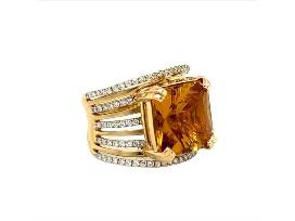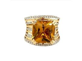 Ring consists of 7.89ct golden citrine with .68 total weight of diamonds. The ring size is 6.5 but Carreras will resize. Valued at $4,800.