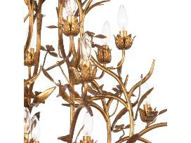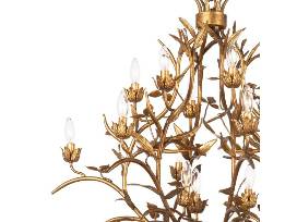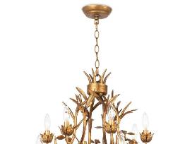 This gorgeous chandelier balances old world elegance with rustic charm. Each branch is cast and gilded in gold leaf. Two tiers of light for the perfect illumination of any room.
