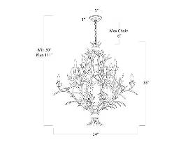 The chandelier measures 39"x34"x34".