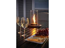 This beautiful, dancing flame for your outdoor table fits into umbrella holes between 1.5-4". Enjoy up to six hours on a one pound LP tank.