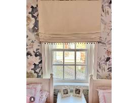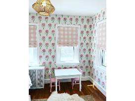 Dress up your windows with two custom roman shades! Design your treatments and select the fabric from KW Design and Fabrication.