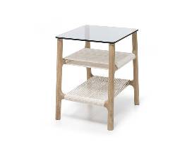 The Fawn side table by Gazzda showcases a sleek, solid oak frame with fluid contours. They used hand-tied, cotton rope to create a practical storage space. To top it all off, Fawn is embellished with a graceful, tempered glass plate. Dimensions are W: 42 cm D: 34 cm H: 46 cm.