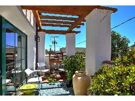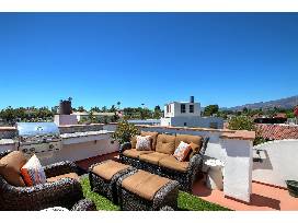 Travel to beautiful Santa Barbara, known as "the American Riviera," for a relaxing one-week vacation in this wonderful open-concept luxury apartment. Located in town, this stunning apartment is a two-bedroom ensuite with 2.5 bathrooms that sleeps five, with one king bed and one bunk bed with a trundle bed. Walk to the locals' favorite coffee shops, restaurants, wine shops, The Mission, museums and Trader Joe's, and drive to any of the many beaches just minutes away. You will enjoy a full kitchen, living room with fireplace, dining area and garden patio as well as a rooftop patio with a gas grill and panoramic views of the city, ocean and mountains.