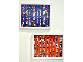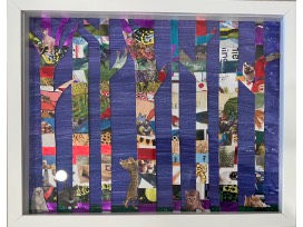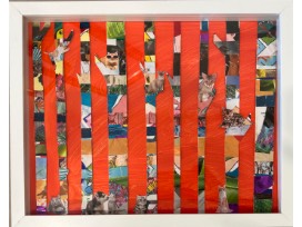 Enjoy this mixed media collage created by Ms Bailey's ECE class. Step into the imaginations of the Fast Kitties with mischief, heart, and hidden pictures of items they love complimented by warm and cool colors of paint in this pair of one-of-a-kind, limited edition artwork.