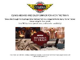 You and three friends can enjoy an elegant, four-course dinner while seeing the sights of the Cuyahoga Valley National Park from seats in the Dome Car of a vintage California Zephyr Rail Car.