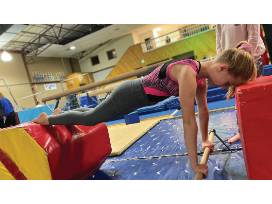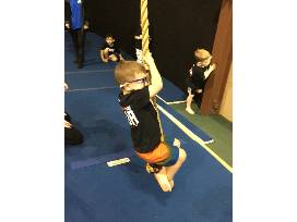 Choose from class options of gymnastics, ninjazone, cheer, or tumbling.