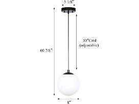 MODERN DESIGN: 1 Light Globe Pendant Light fixture with white globe glass works well in many different styles of decor including traditional, transitional, beach style or contemporary. Adjustable kitchen hanging ceiling light can be installed on sloped ceilings and with adjustable cord that allows you to customize the fixture to your lighting needs and desired look.