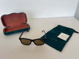 With a retro inspired style, this pair of acetate sunglasses are defined by their rectangular shape and brown lenses. For a logo touch, the design is enhanced by blue and red stripes on the temples. Plus, a Large Temple Ophthalmology crewneck.
